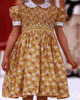 Smocked Dress with White Flower Come Up Upon The Top Surface Fabrication : 75% cotton, 25% polyester Dress available in size 1 - 4 for 1 - 4 years old US$ 14.0/each 5 - 8 for 5 - 8 years old US$ 16.5/each |