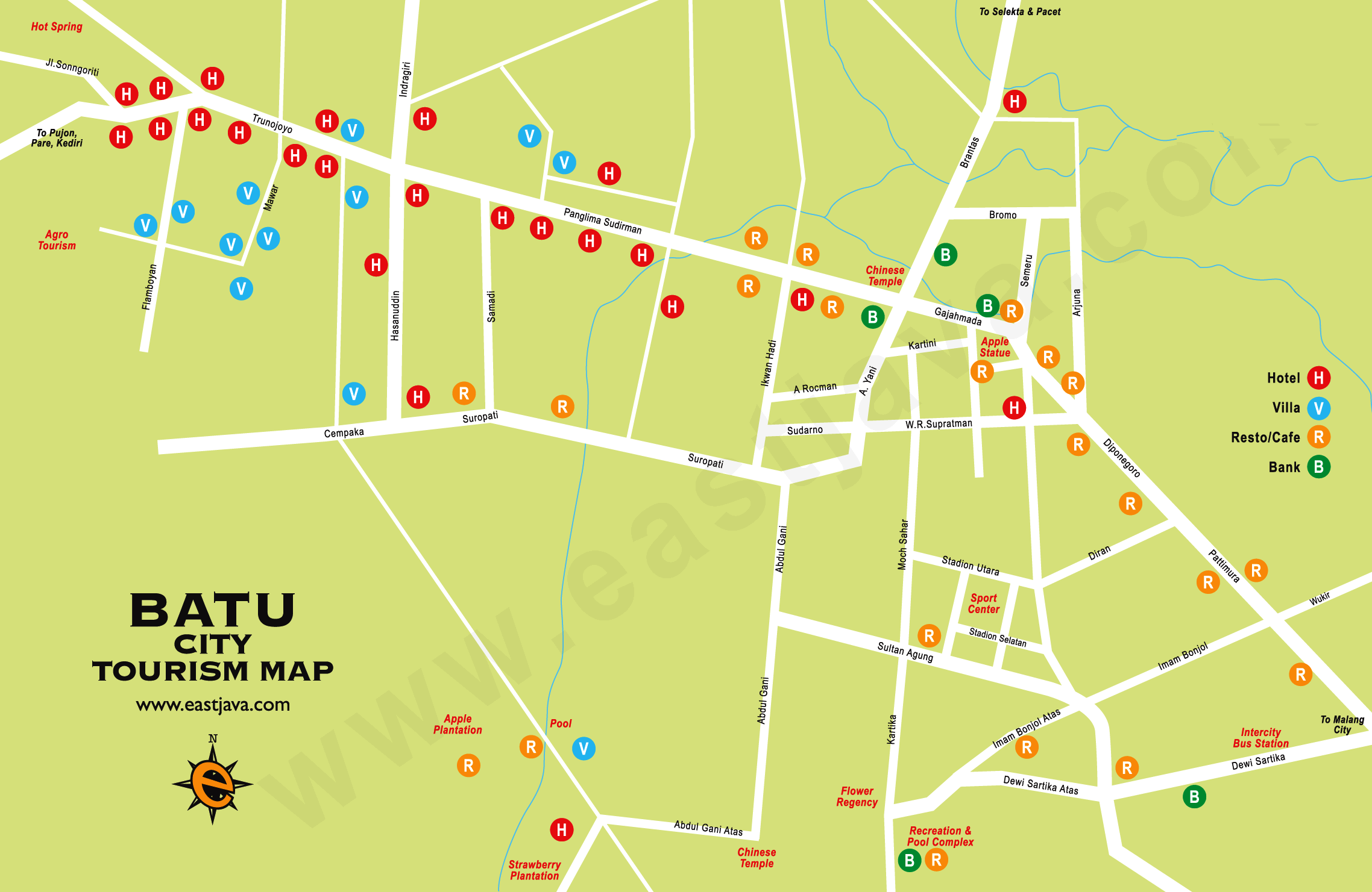 Batu Batu city is located in 800 meters above sea level, with cold temperature between 17-25,6 degree Celsius. Batu city is an area in East Java that surrounded by mountains. Geographically, Batu is a mountainous area. The potencies of this area are coming from the agro tourism properties, which is fruits, vegetables, mountain panorama and the hills. When the visitors visit to Batu city, the fresh mountain air will welcoming us. There are some tourism destination that most visitors visit regularly, they are; Jatim Park, Selecta, Songgoriti, Agro tourism, Coban…