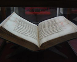 Diskripsi : Al-Qur’an ini lengkap 30 Juss yang di tulis oleh Raja Sumenep ke 32 yang bernama Sultan Abdurrahman Pakunataningrat sekitar Tahun 1811 yang ditulis oleh beliau Hanya dalam waktu semalam (12 jam) pada masa Kerajaan.